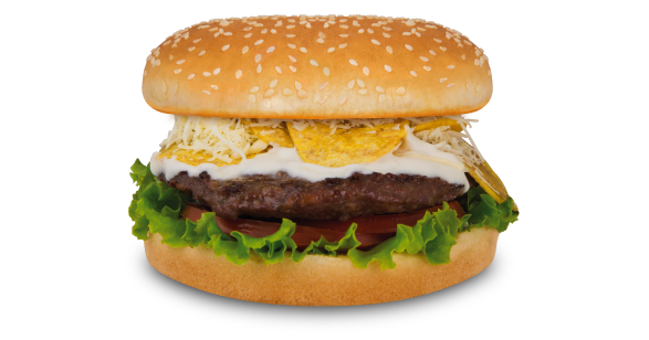 Carne de res, jamón, queso, tomate, cebolla grille y lechuga