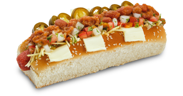 Salchicha americana, tocineta, maíz tierno, queso americano, papa chip y salsa de la casa